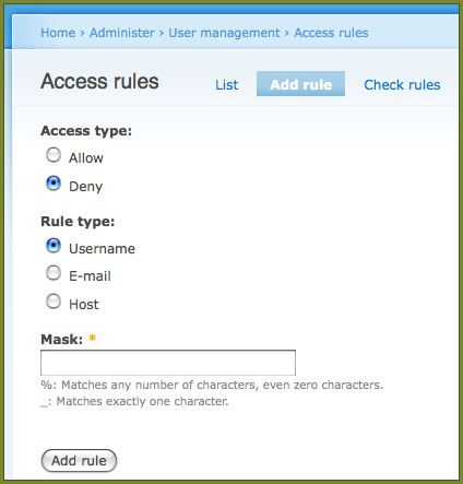 There are also built in methods of blocking users from say a particular domain. This is particularly useful if a user is found to be abusing the system. It can also be used in reverse to allow users soy from a particular university.