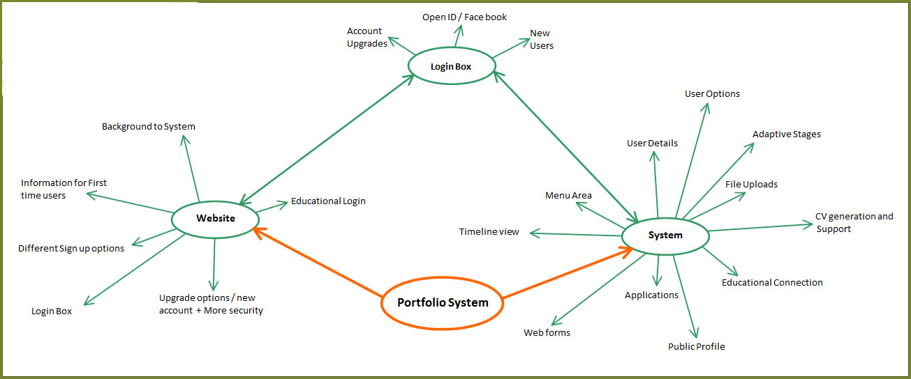 The system is aimed at students from GCSE to University with further use after education, however in practice there is no reason why anyone who wanted to keep a portfolio (digital) could be able to use it provided they had the required knowledge of the web. The system will be divided into stages, so only the appropriate content is provided at each stage of education. There will also be options for institutions to create templates for students to use, this would allow it to run alongside any existing systems that may currently be used.